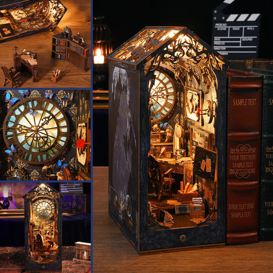 DIY Miniature House Kit Wooden Book Nook with LED Lighting – Creative Bookends to Assemble for Teenagers