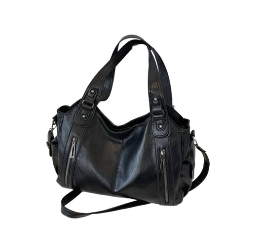 Women's Premium Leather Shoulder Bag with Zipped Compartments – Ergonomic Comfort and Elegant Design
