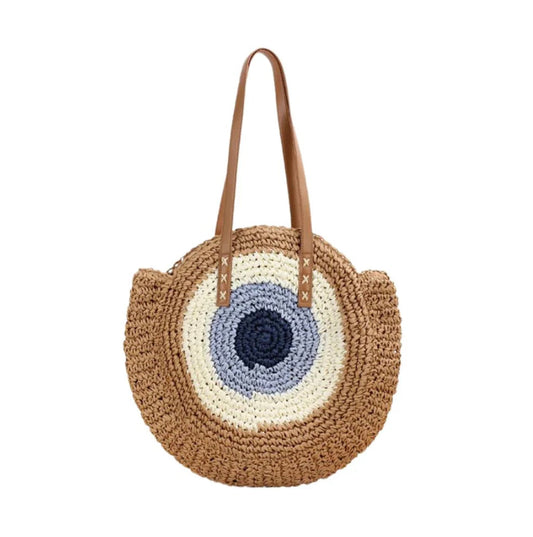 Women's Summer Bag in Woven Straw with Leather Shoulder Strap – Practical and Elegant Summer Bag for Outings and Beach
