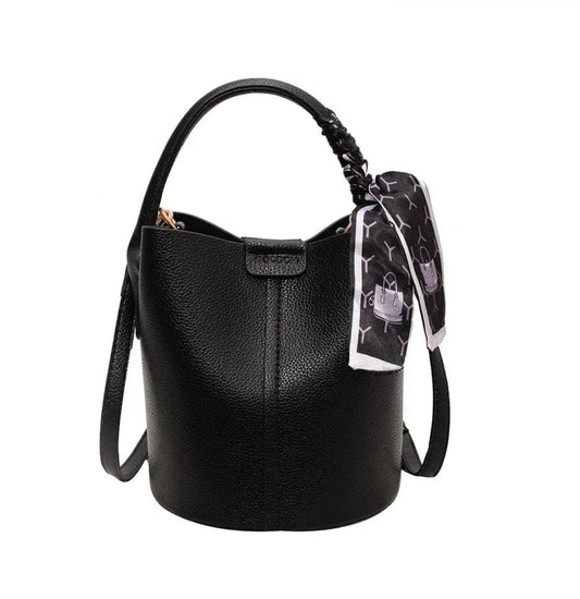 Black Leather Bucket Bag for Women with Adjustable Shoulder Strap – Elegant and Practical for All Occasions