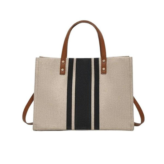 Durable Canvas Tote Bag for Women with Stripes – Large Versatile Handbag for Outings and Daily Use