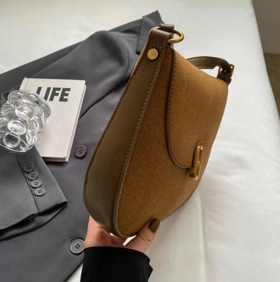 Women's Shoulder Bag in Faux Suede Leather with Adjustable Straps – Elegant and Practical for Daily Use