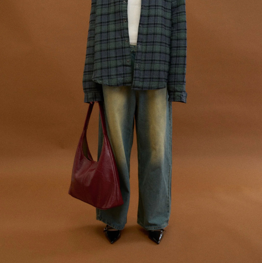 Discover the perfect shoulder bag for all your occasions. With its semi-circular shape and elegant design, this vegan leather bag is both practical and stylish. Its spacious main compartment is designed to hold a 13-inch Macbook, making it an ideal choice for students and professionals on the go.