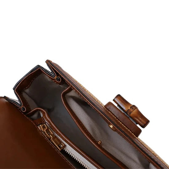 Women's Woven Straw Handbag with Bamboo Handle – Elegant and Practical Brown Shoulder Bag