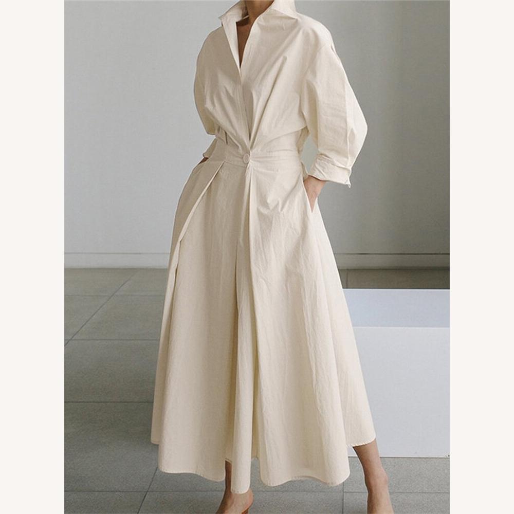 Elegant Long Black Summer Dress for Women with Pockets and Long Sleeves – Lightweight and Comfortable Fabric