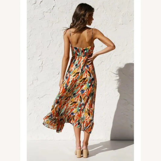 Elegant Long Women's Dress with Ruffles – Bohemian Floral Maxi Summer Dress, Fluid and Airy Fabric