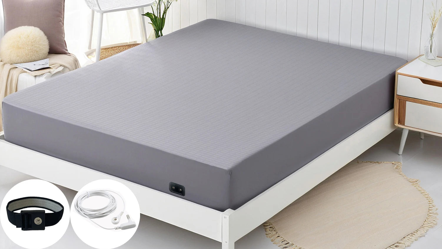Discover the comfort and benefits of grounding with this innovative fitted sheet. Designed to improve your sleep quality, it helps reduce radiation exposure while providing antistatic protection.