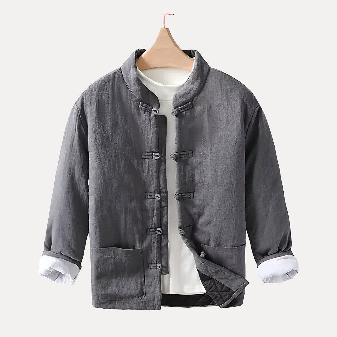 Casual Quilted Jacket for Men with Mandarin Collar in Linen – Comfort and Style