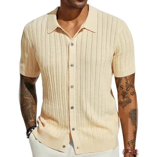Short Sleeve Knitted Cardigan Shirt for Men – Breathable Large Size Beach Top