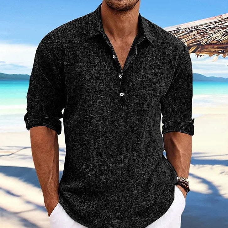 Discover the casual long-sleeve beach shirt in cotton and linen, a perfect choice to combine comfort and style. Ideal for beach days or a casual streetwear look, this shirt offers effortless elegance.