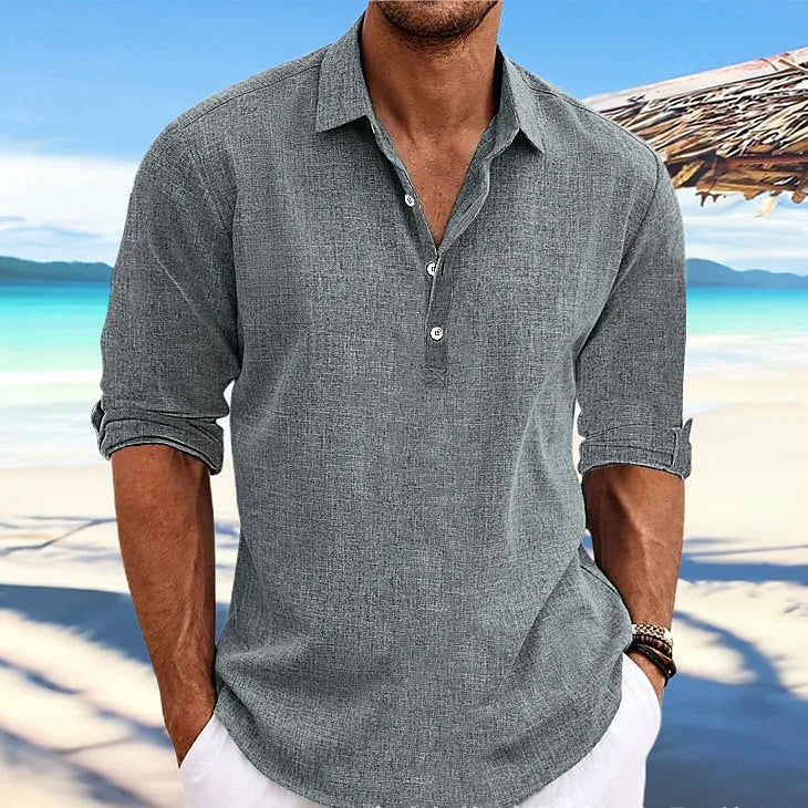 Casual Long Sleeve Beach Shirt in Cotton and Linen – Elegant Blouse for Streetwear