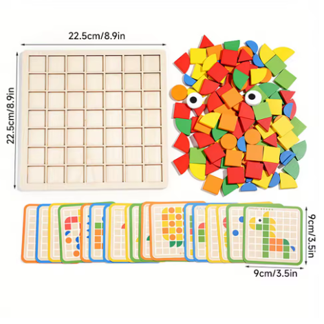 Montessori Wooden Puzzle Game for Children - 180 Educational Pieces, Intellectual Development, Dimensions 23x17x5.3 cm