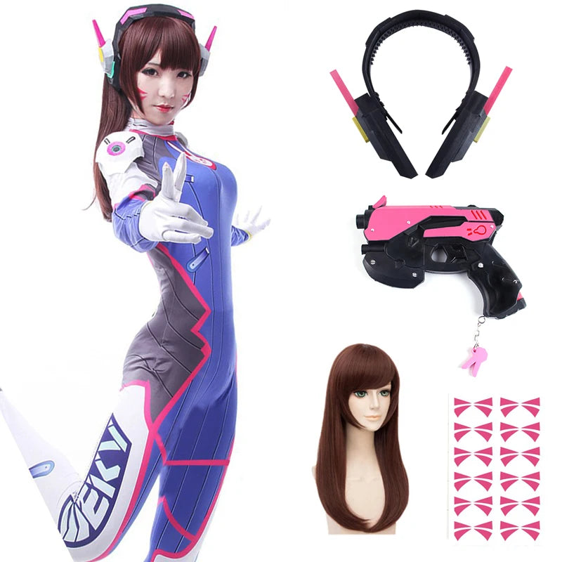 D.Va Cosplay Costume with Wig and Accessories for Halloween 2025