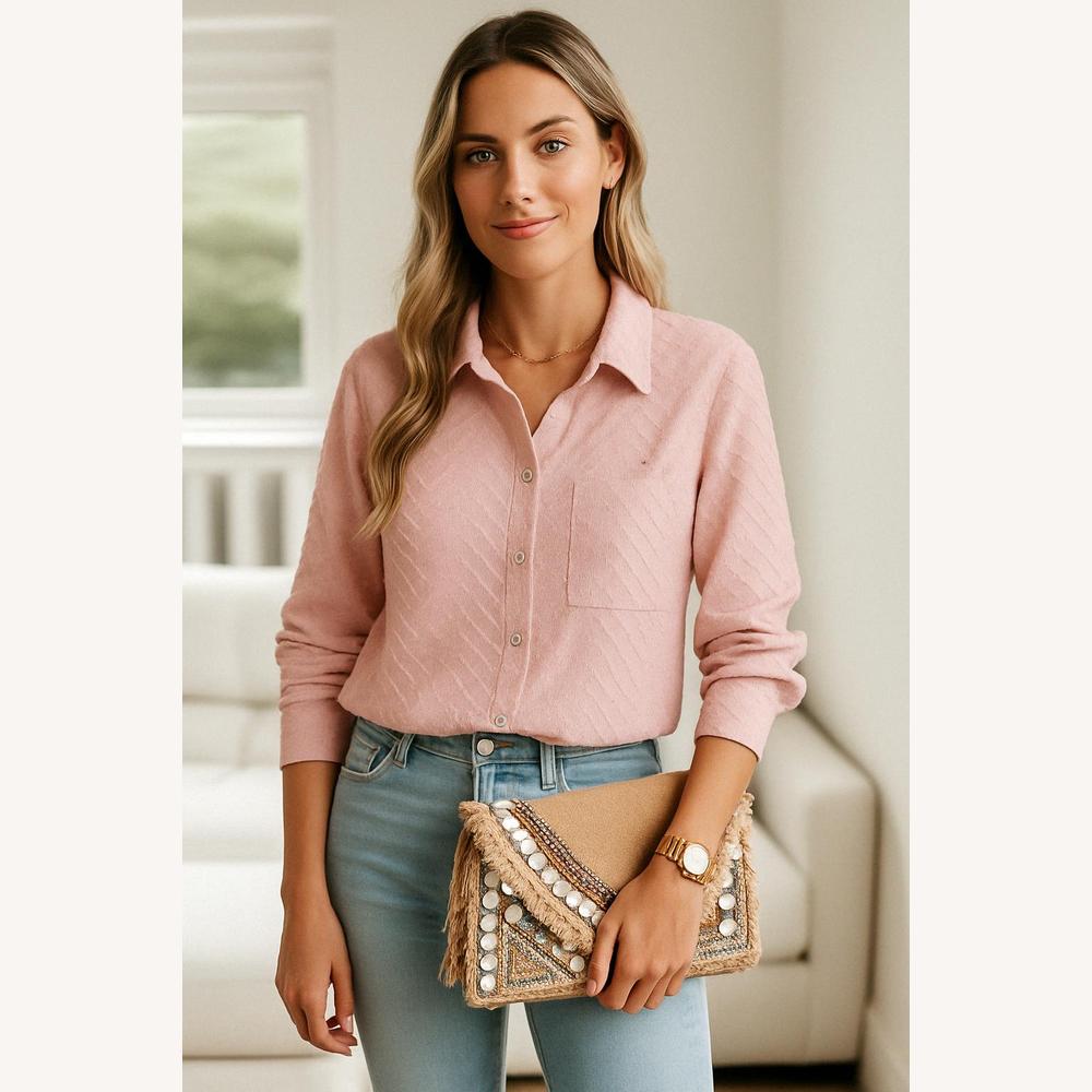 Textured Soft Pink Women's Shirt with Buttons – Chic Loose and Light Women's Blouse for Casual Elegance