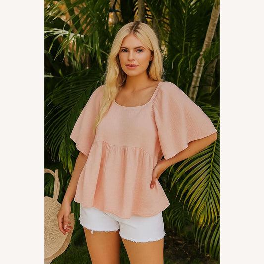 Women's Oversize Blouse in Apricot Pink Gauze – Light and Flowing, Short Sleeves, 100% Cotton