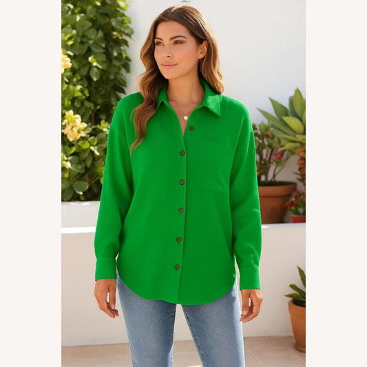 Women's Shirt in 100% Cotton Gauze – Loose Fit and Summer Style, Chest Pocket, Casual