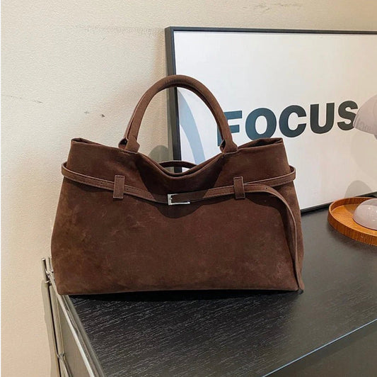 Elegant Women's Suede Handbag with Inner Pocket – Spacious Bag for Office and Casual Outings
