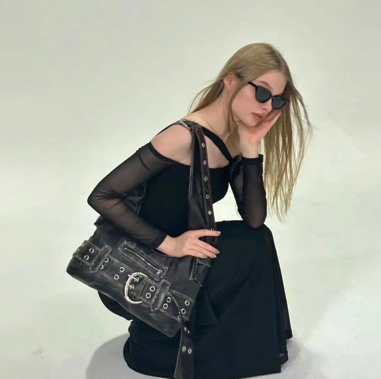 This 2000s-inspired hobo bag combines boldness and functionality. With its distinctive buckle and adjustable strap, it adapts to all your desires. Its compact yet spacious design allows you to carry all your essentials in style, whether worn crossbody or by hand.