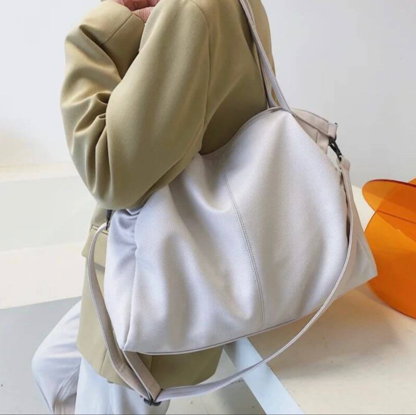 Large Women's Leather Handbag with Multiple Pockets, Adjustable Shoulder Strap – Elegant and Spacious Black or Brown