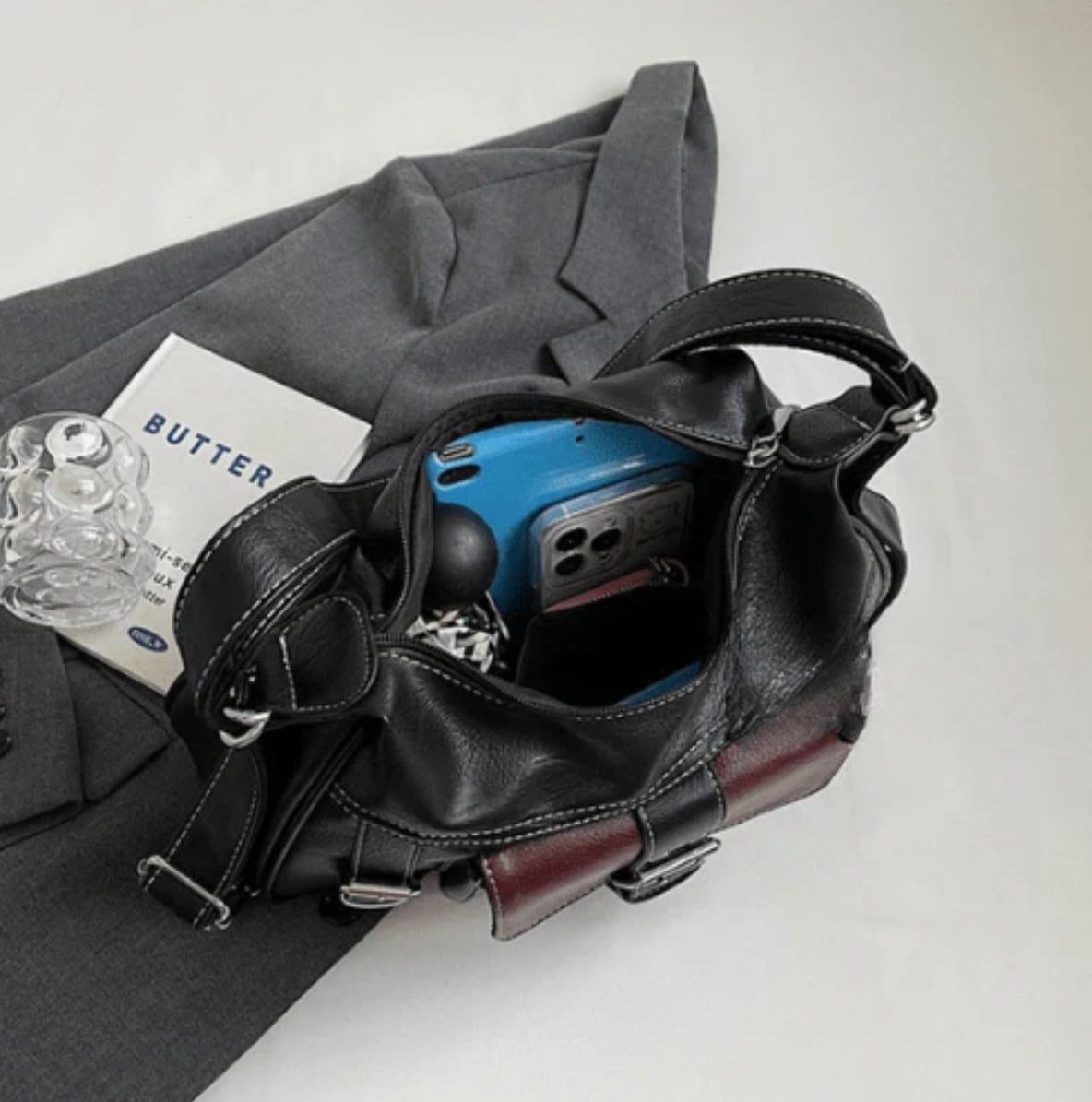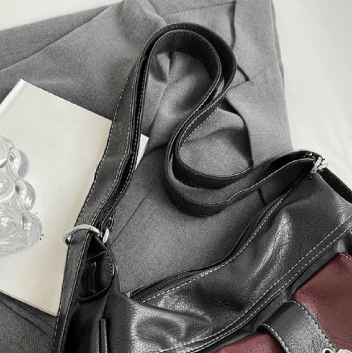 Women's Y2K Handbag in PU Leather with Adjustable Shoulder Strap – Elegant Vintage Design Black and Burgundy