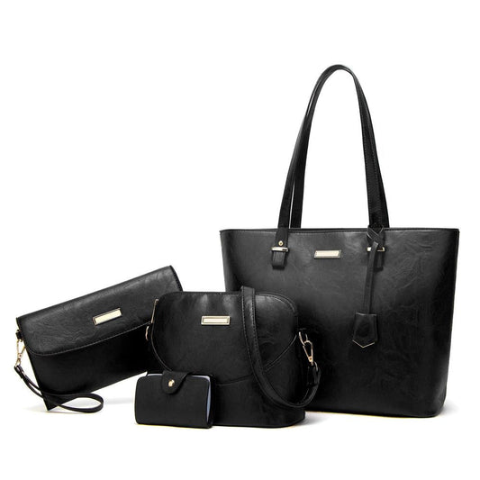 Elegant Women's Handbag in Synthetic Leather, Practical Shoulder Bag for Mother and Child – Four Pieces, Ideal for Daily Outings