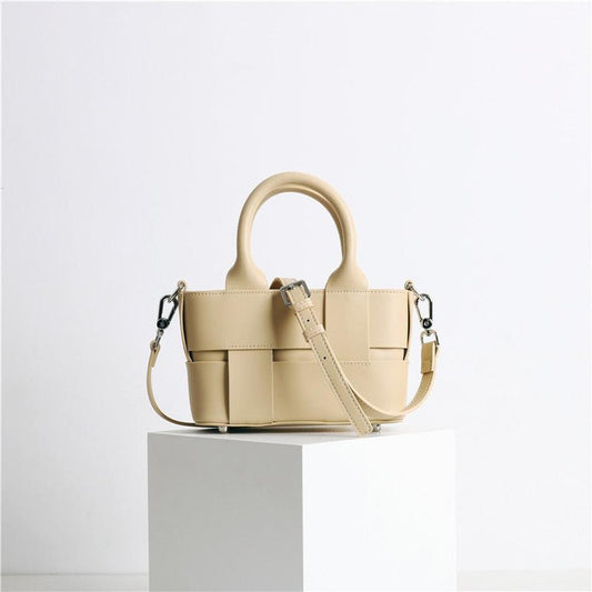 Woven leather handbag for women – Vintage design, spacious interior, removable shoulder strap, 4 trendy colors