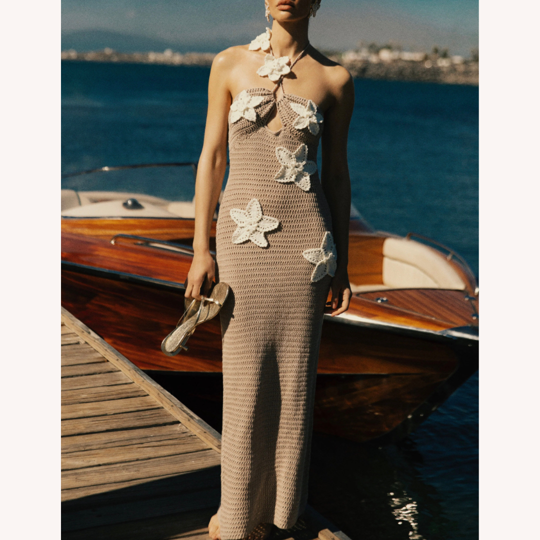 Blue Crochet Maxi Dress for Women – Boho Chic Style