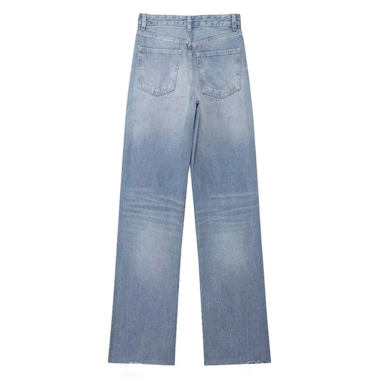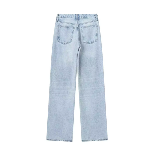 Women's Light Denim Baggy Jeans Curved Waist Size S M L XL