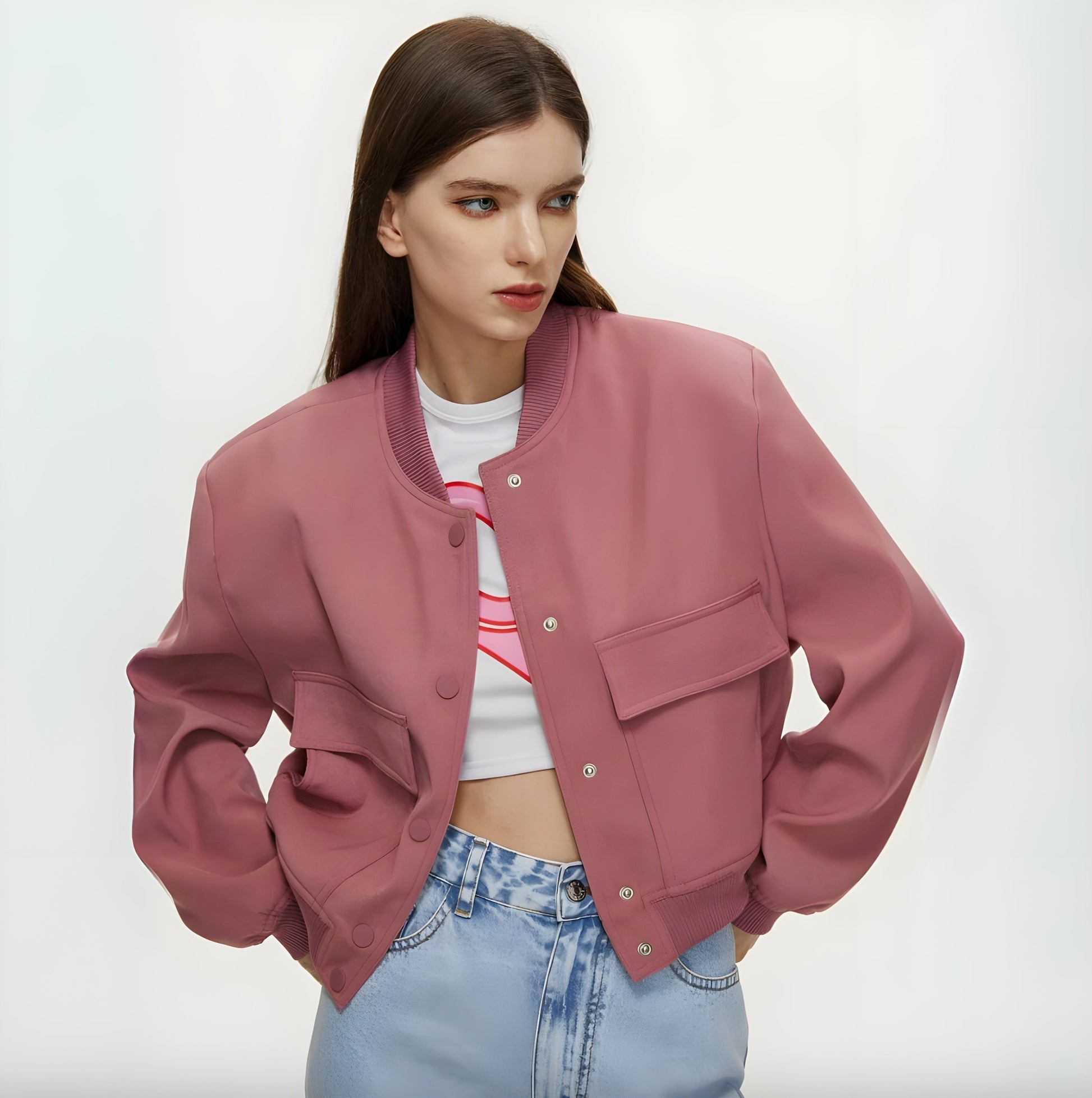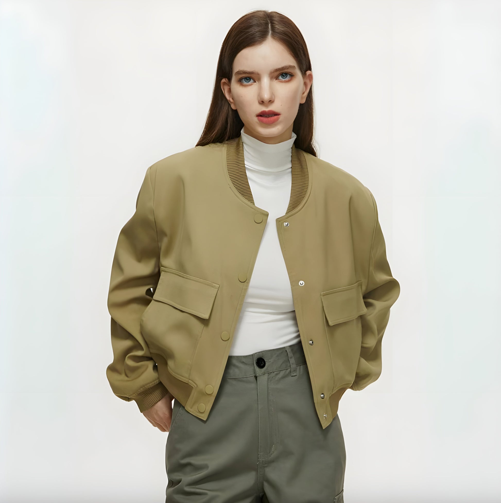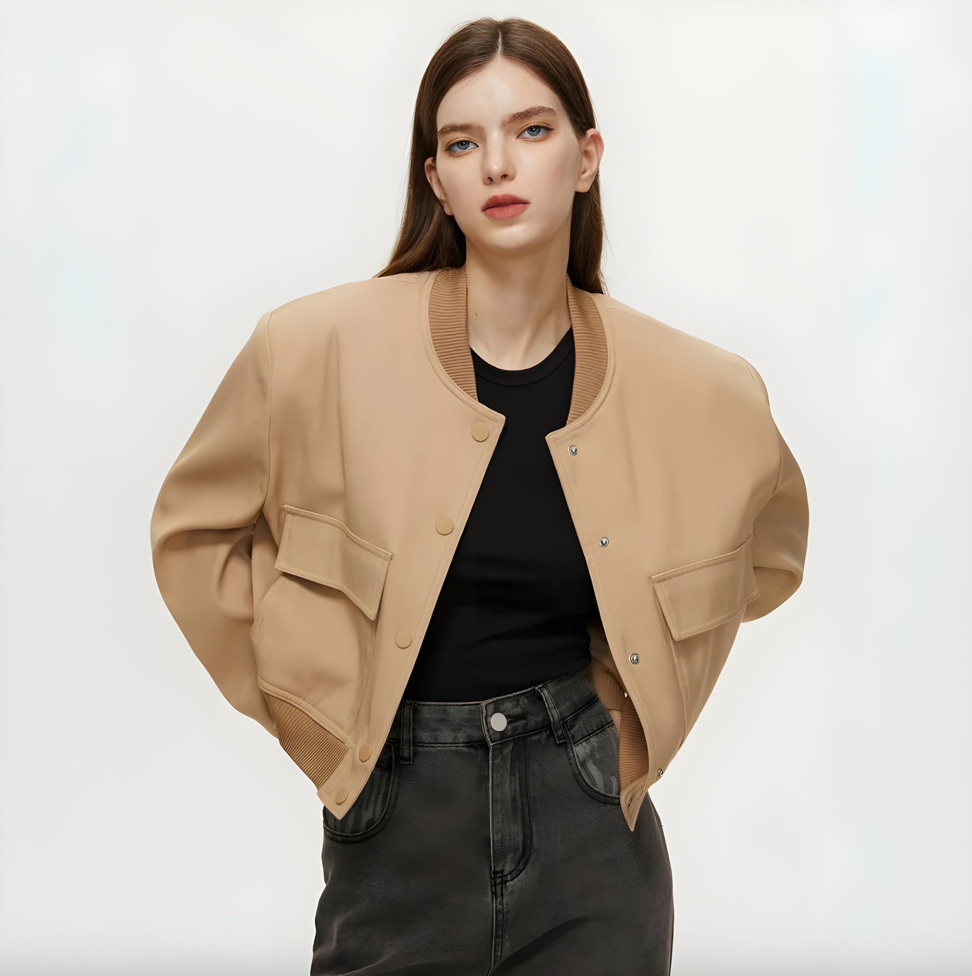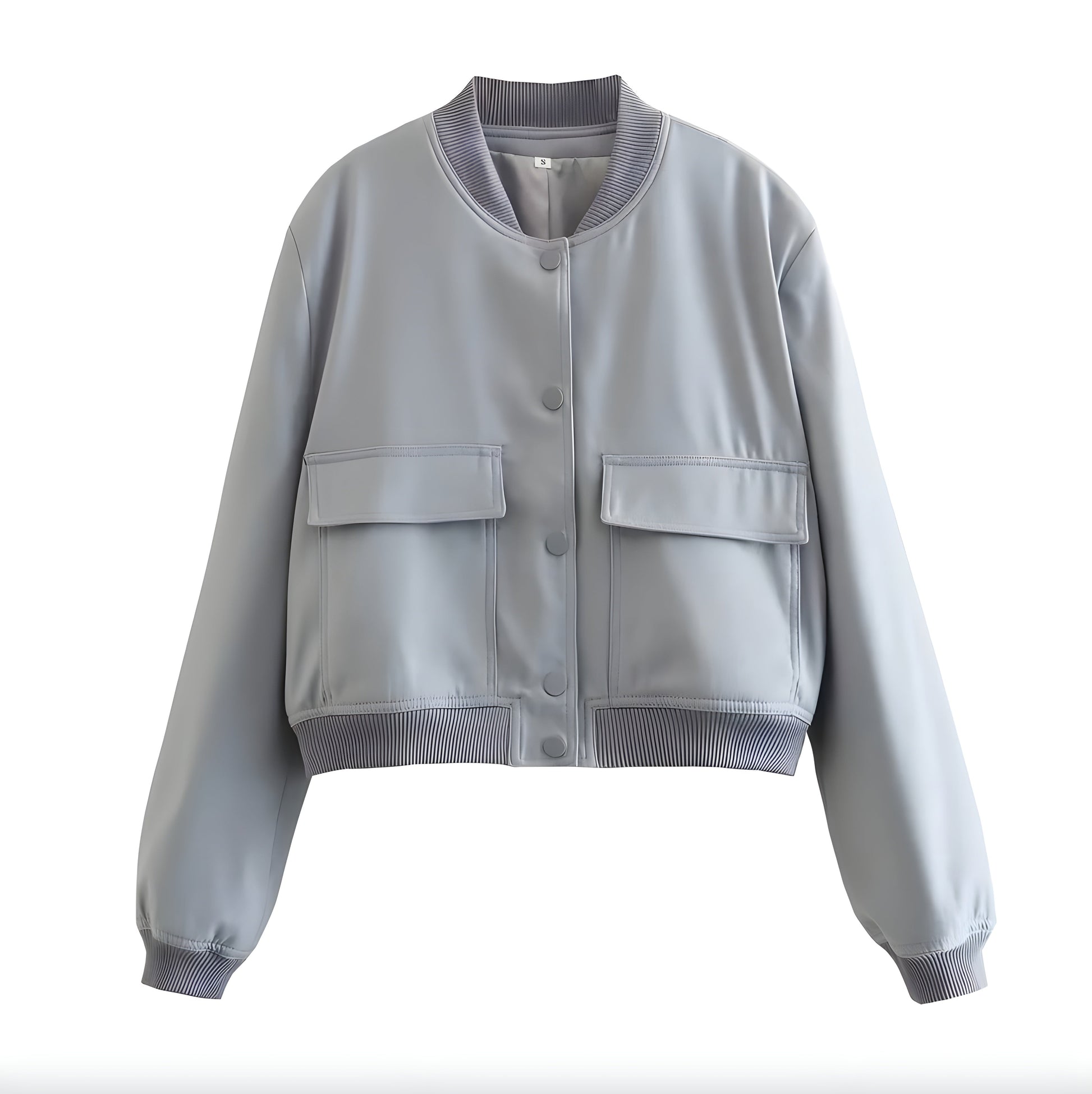 Discover the short jacket ideal for an urban and casual style. This white model, inspired by bomber style, combines lightness and trendiness. Its loose fit and soft material make it a must-have for mid-season, perfect for your city outings or coffee breaks.