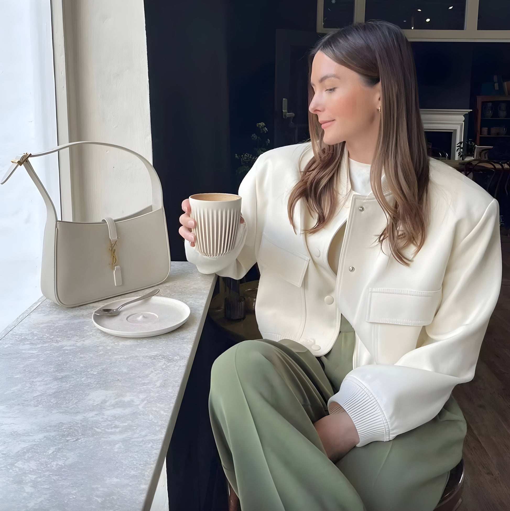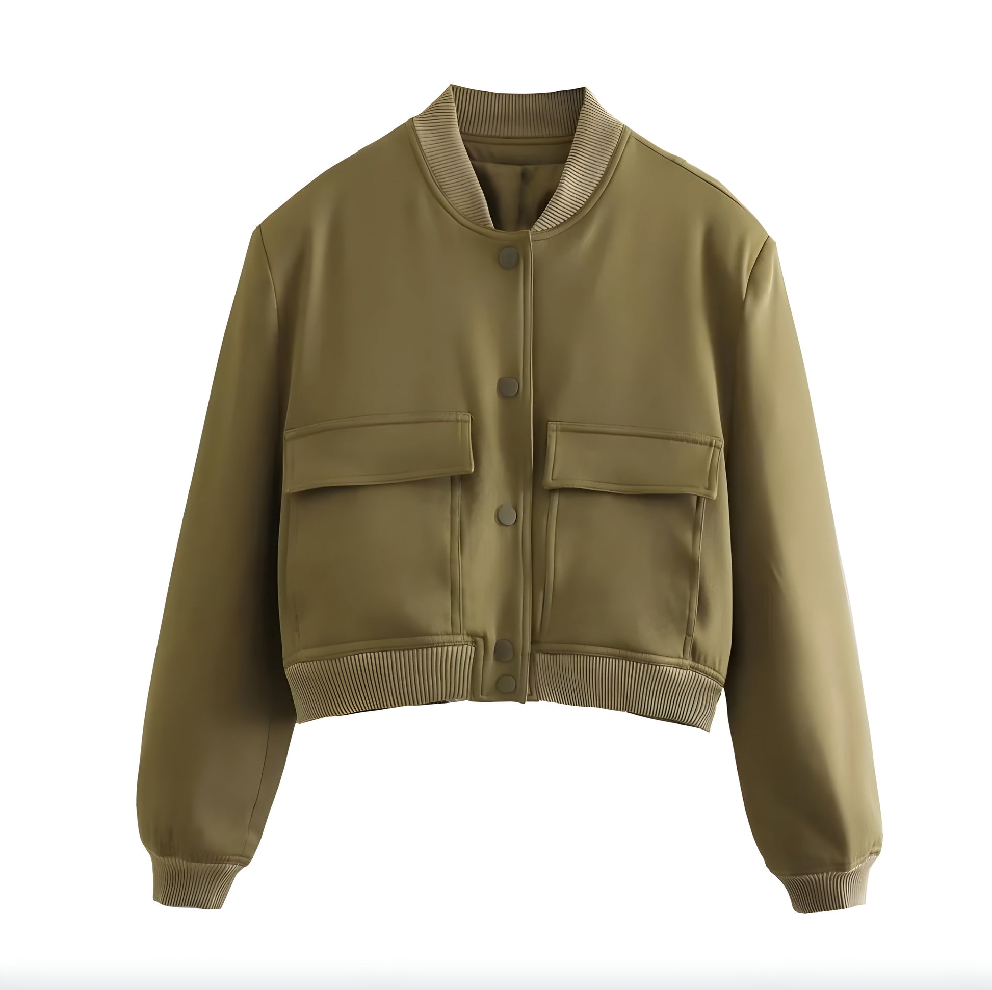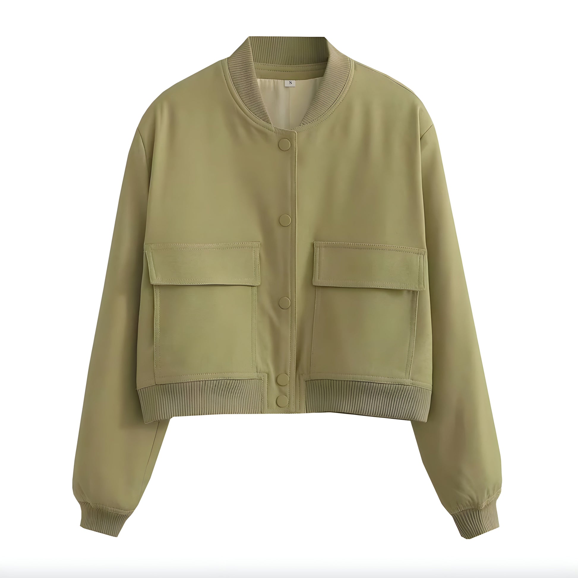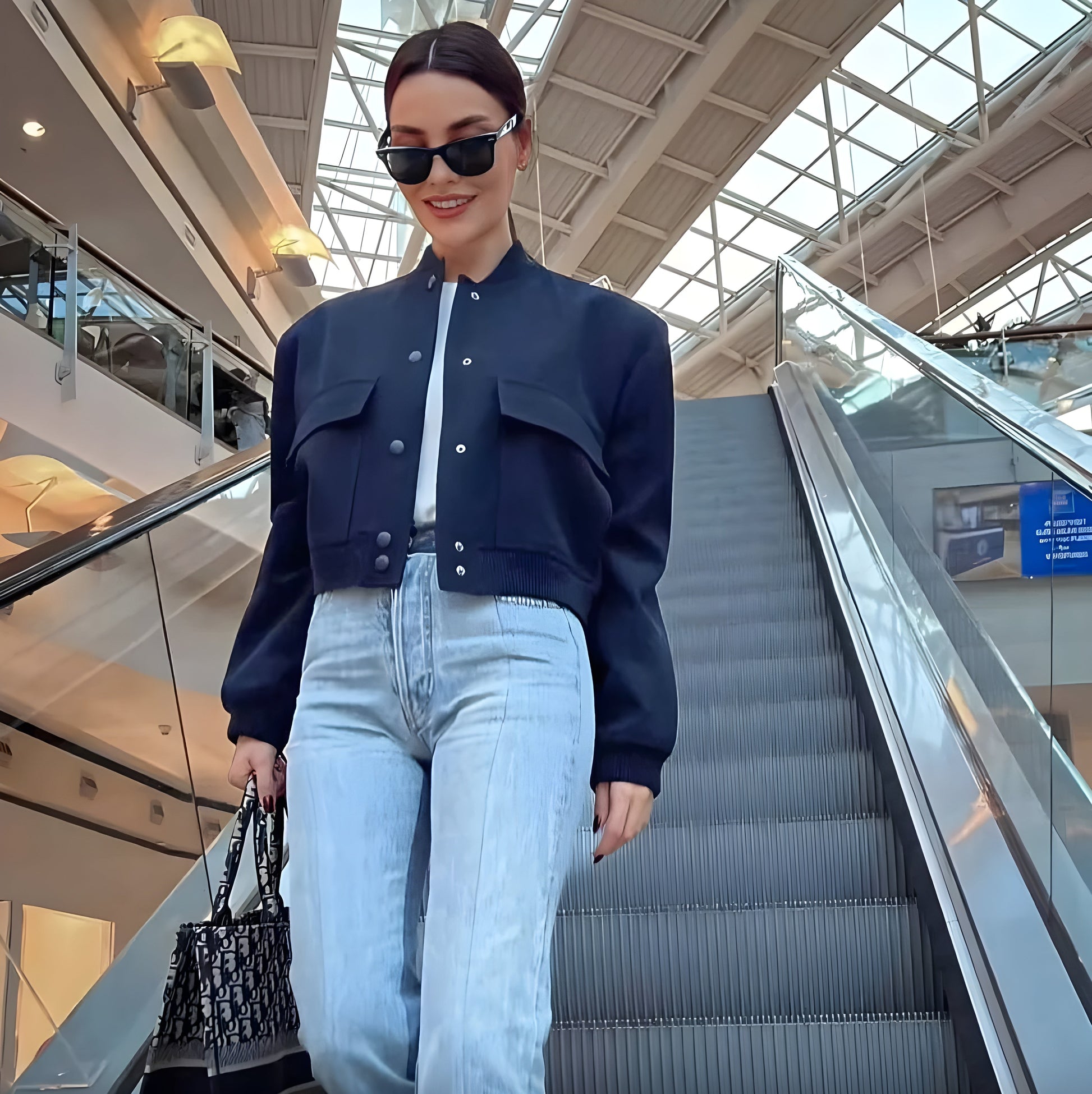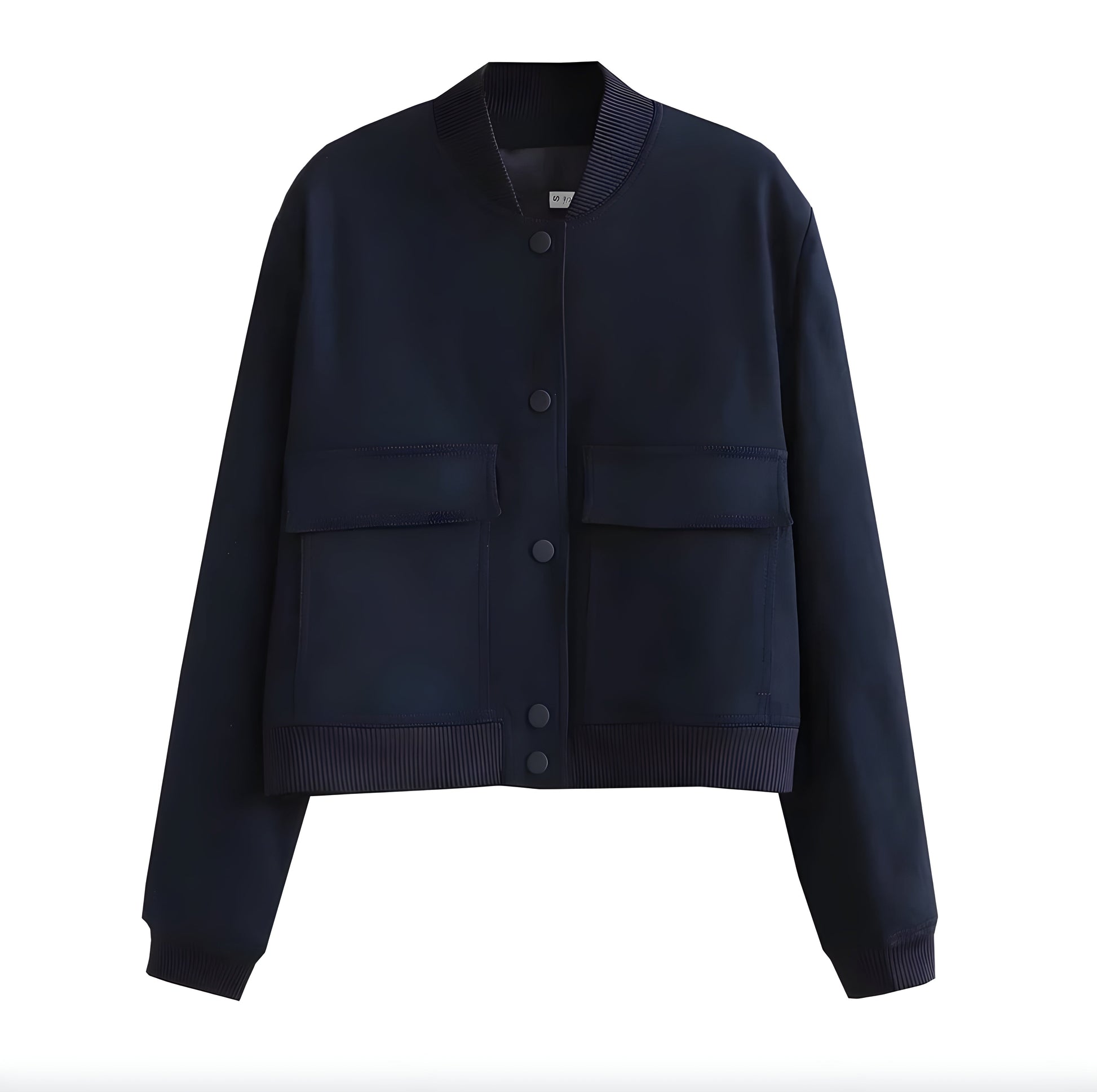 Discover the short jacket ideal for an urban and casual style. This white model, inspired by bomber style, combines lightness and trendiness. Its loose fit and soft material make it a must-have for mid-season, perfect for your city outings or coffee breaks.