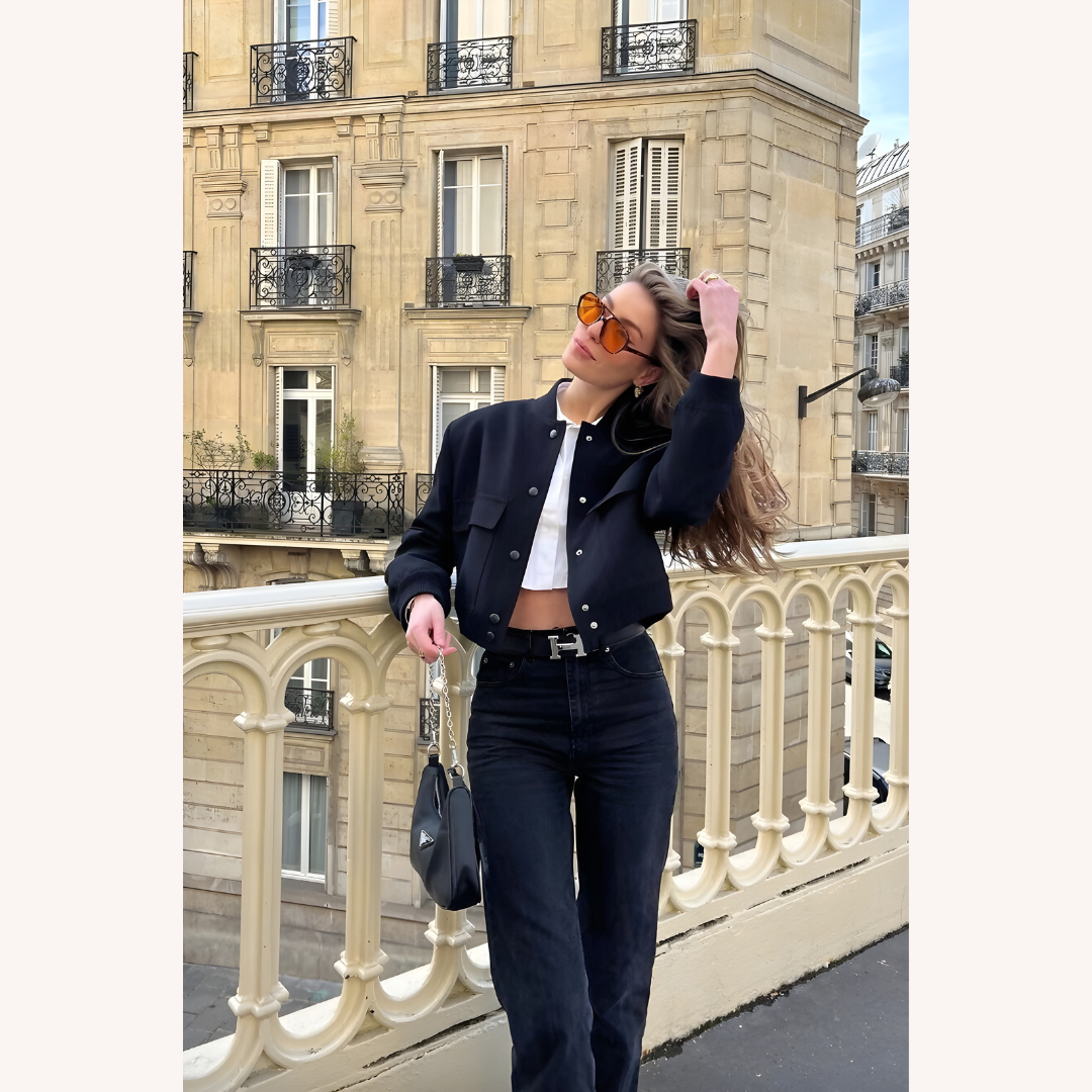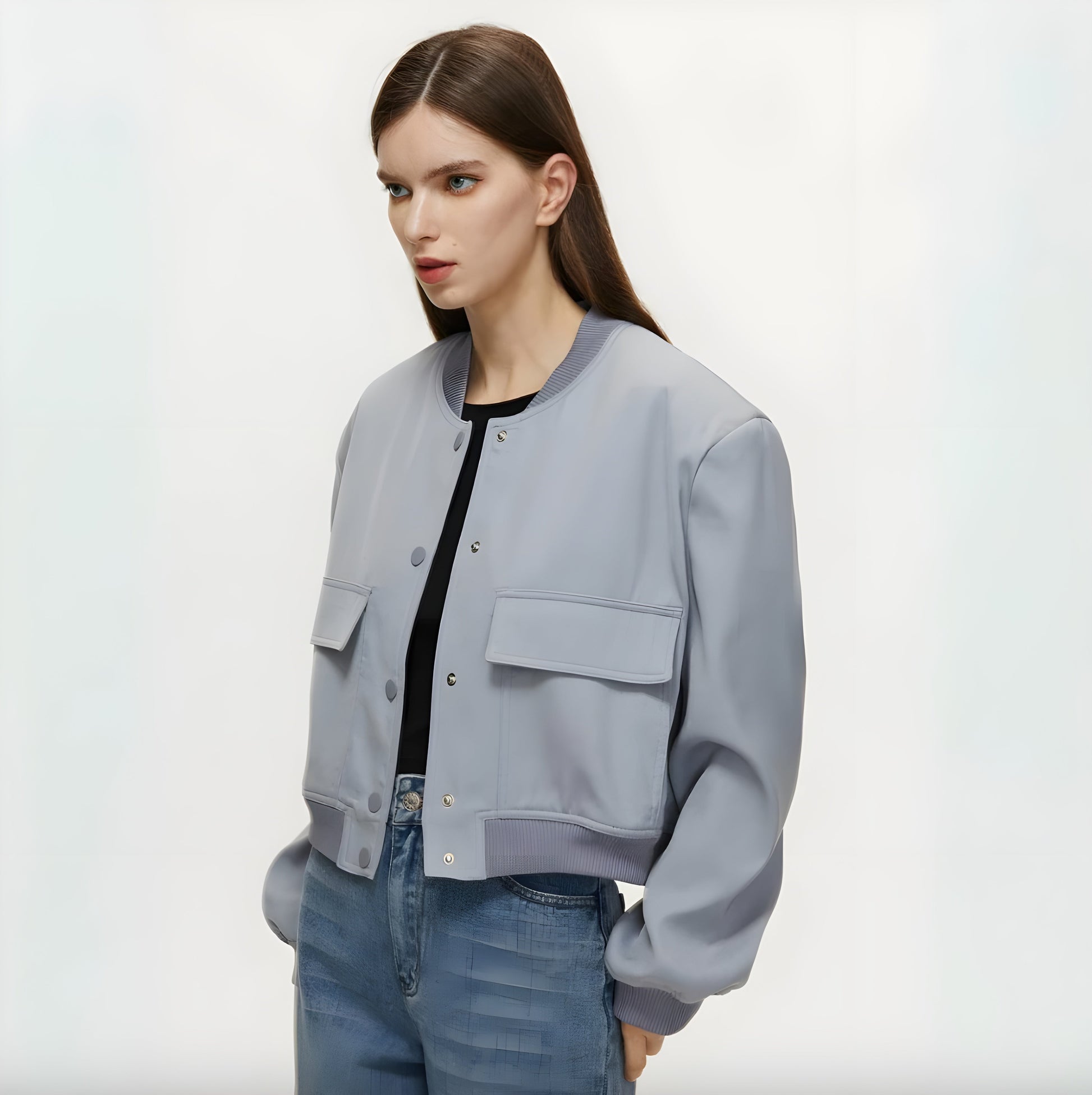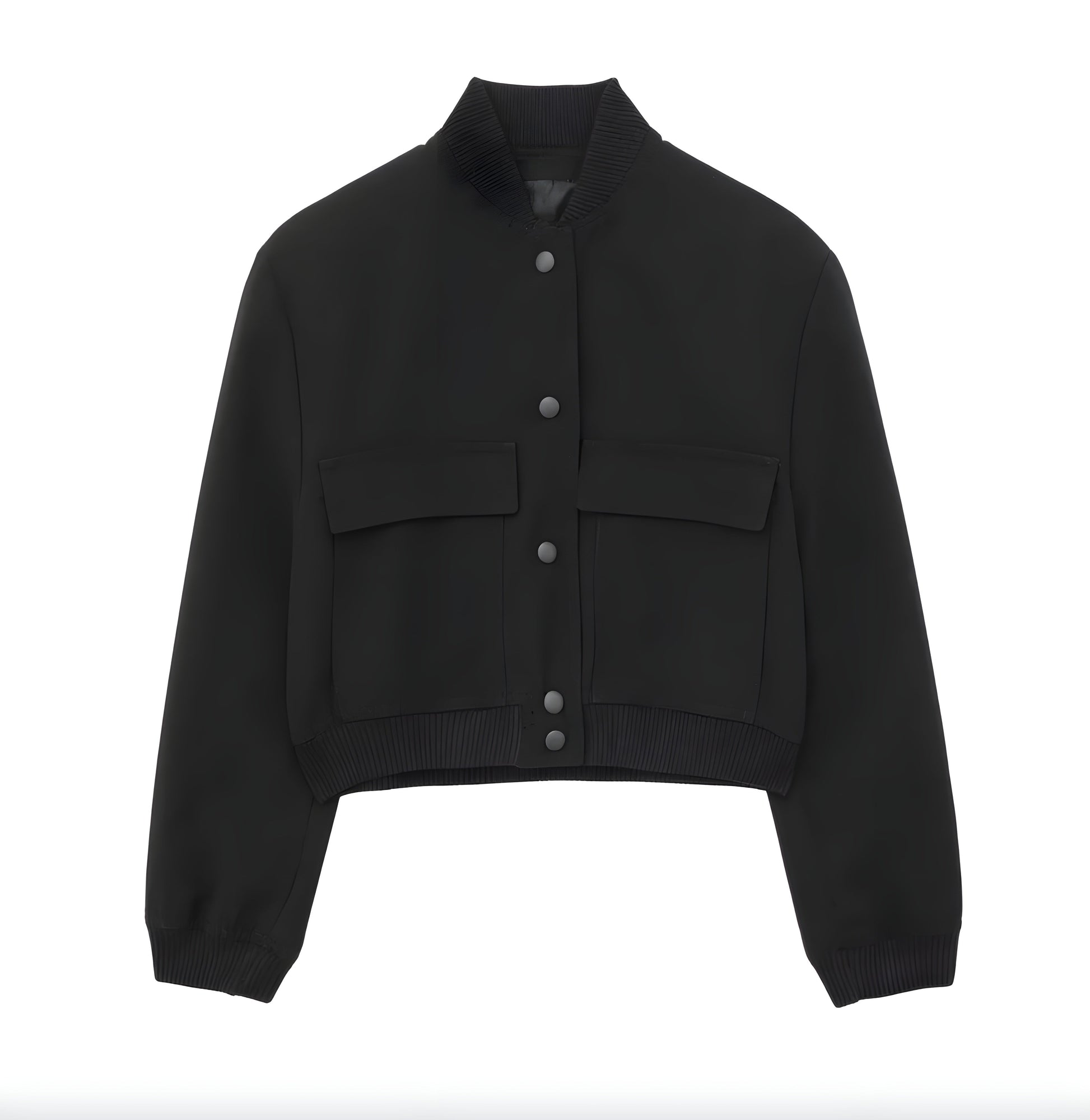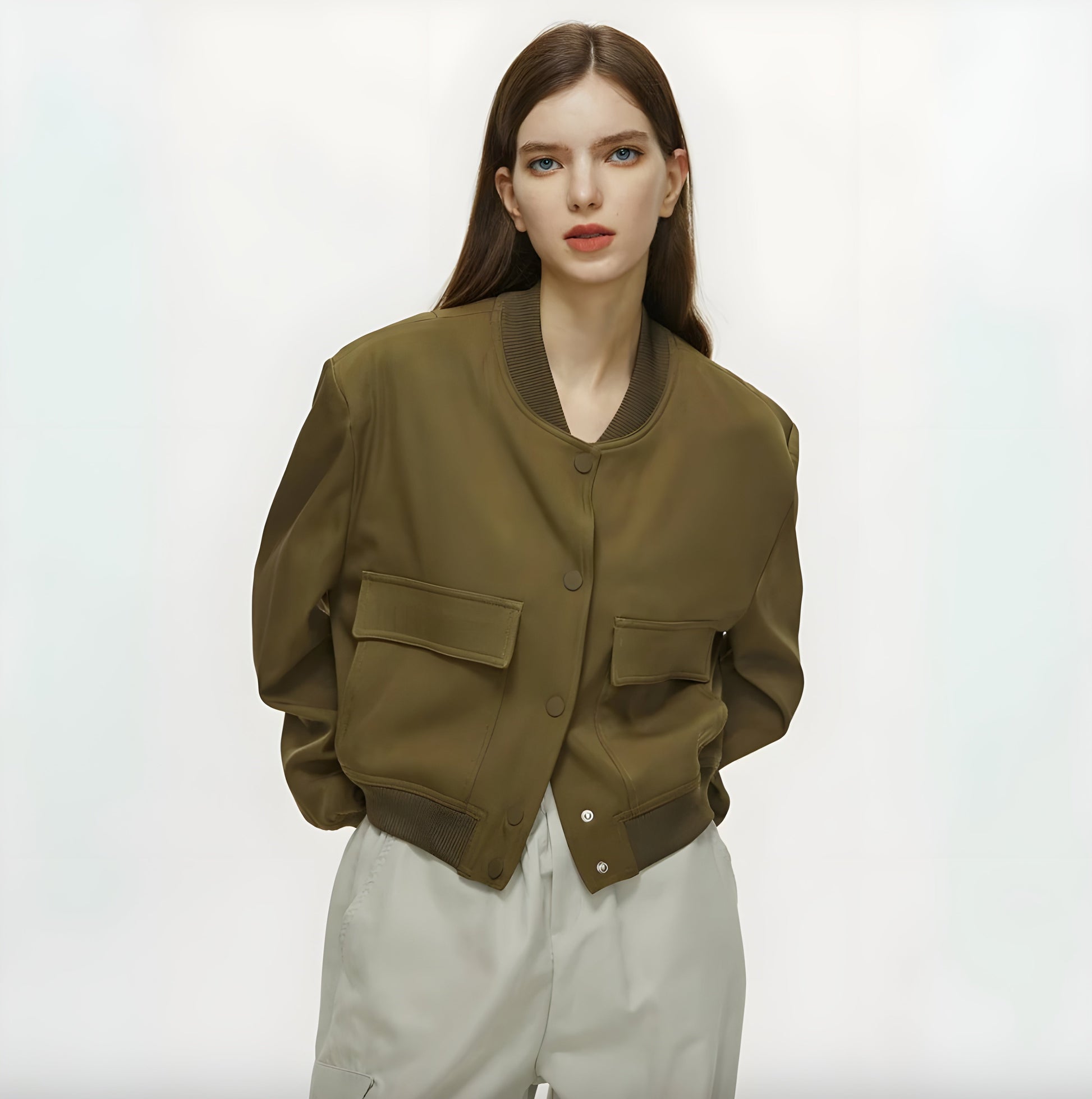 Discover the short jacket ideal for an urban and casual style. This white model, inspired by bomber style, combines lightness and trendiness. Its loose fit and soft material make it a must-have for mid-season, perfect for your city outings or coffee breaks.