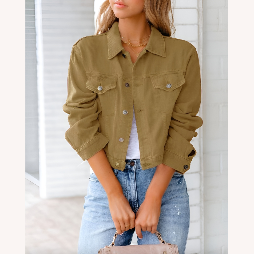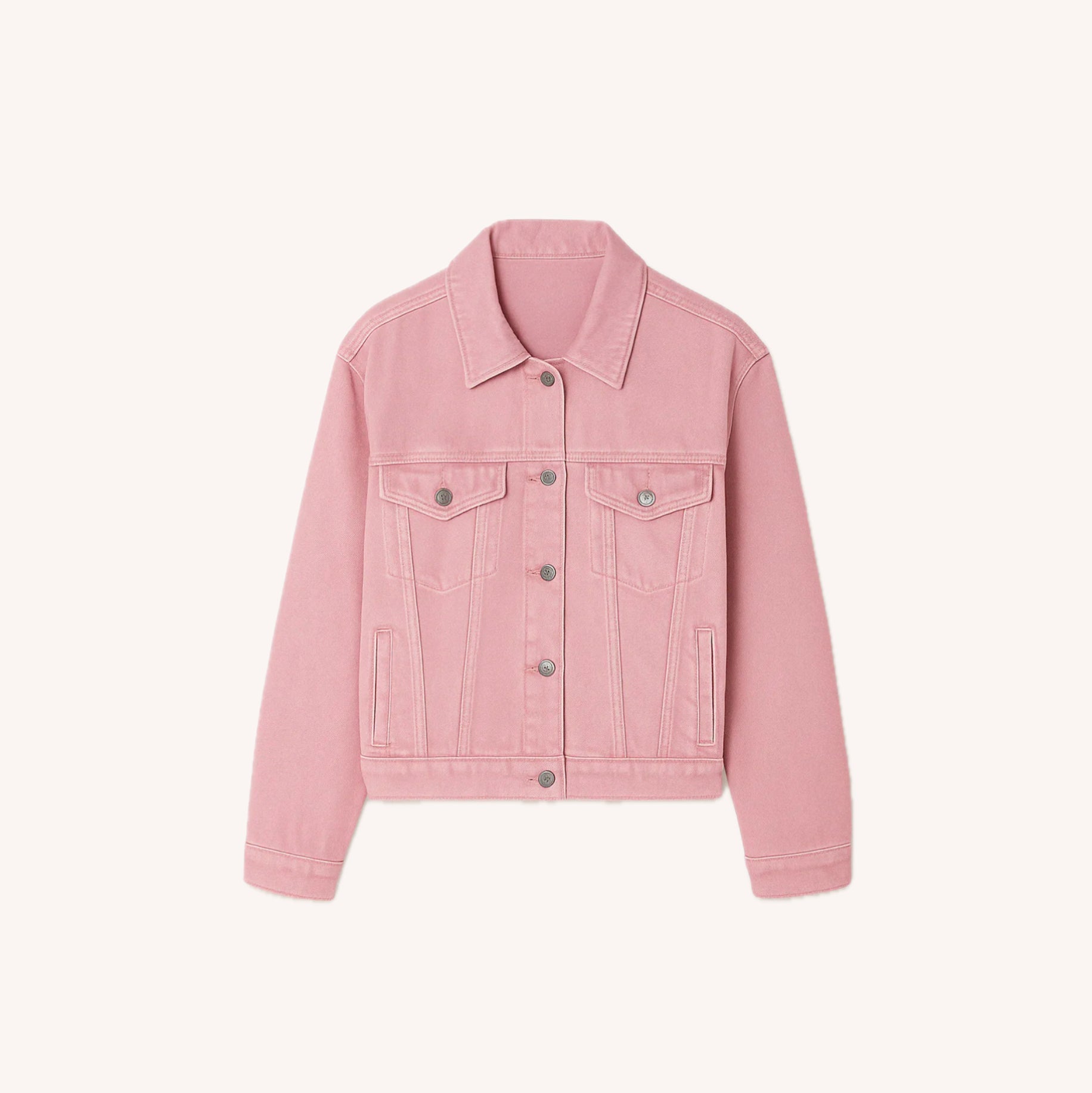 Discover the perfect pink denim jacket for spring days and summer evenings. This short and stylish piece adds a touch of color to your everyday outfits. With its structured cut and rolled-up sleeves, it combines comfort and trendiness, ideal for a casual look.