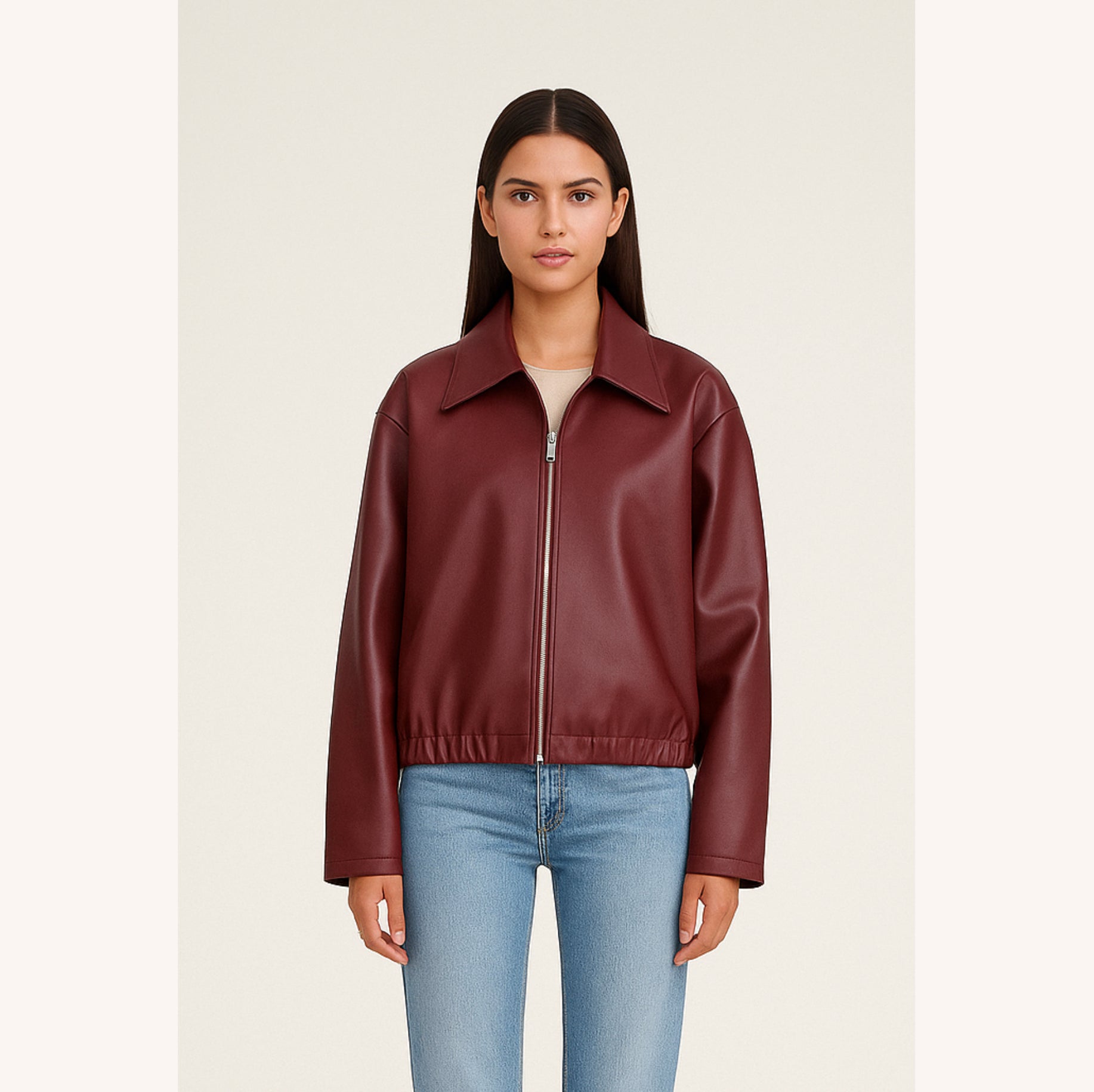 Women's Burgundy Red Faux Leather Zipped Jacket