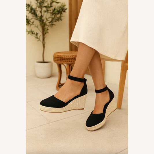 Women's Black Wedge Sandals Size 38 Synthetic Comfortable