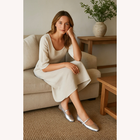 Women's Metallic Ballet Flats Size 38 Synthetic Leather Comfortable
