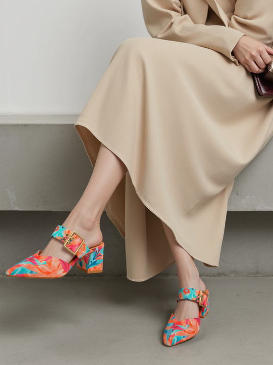 Women's Multicolor Floral Pump Size 37 Vegan Leather Low Heel Chic and Comfortable