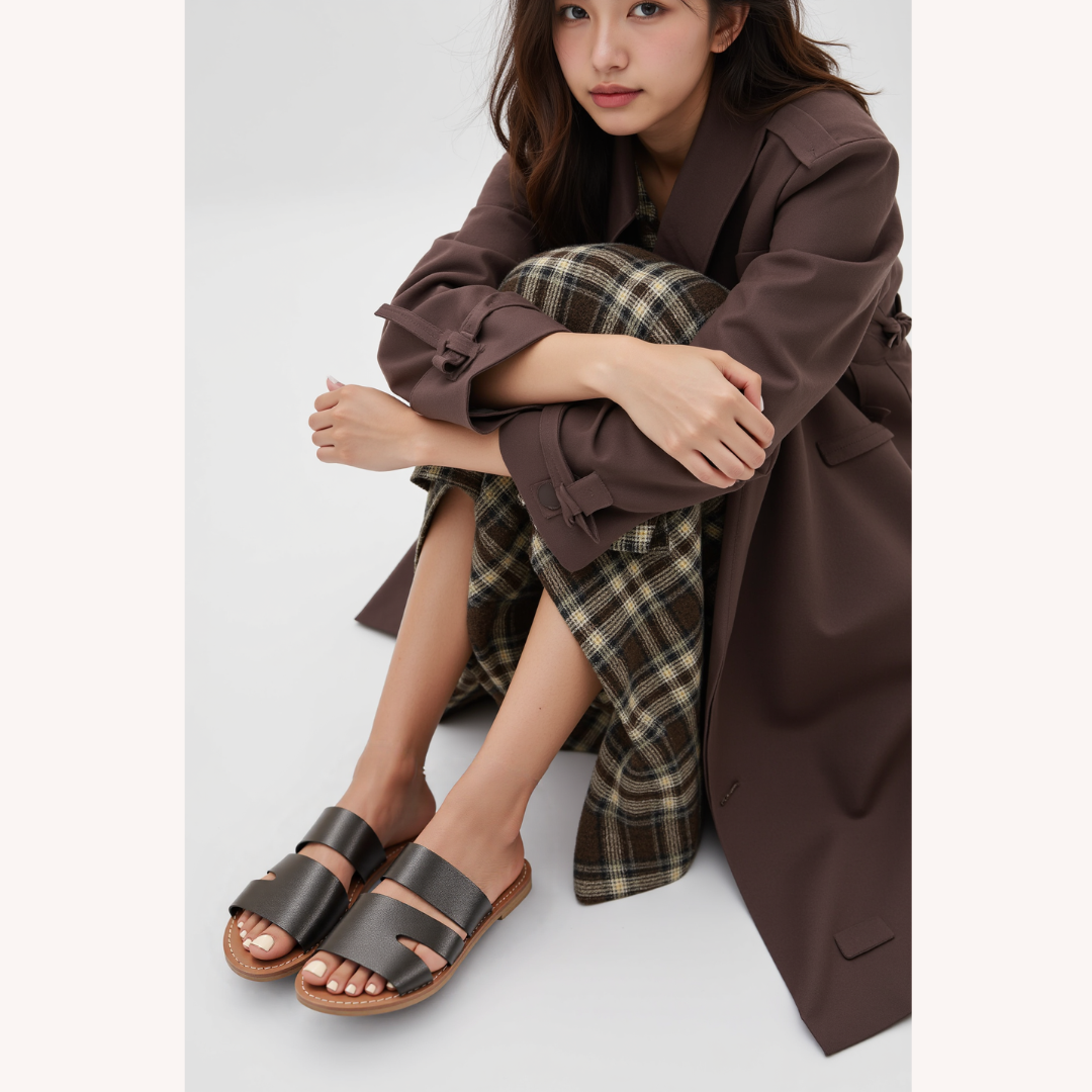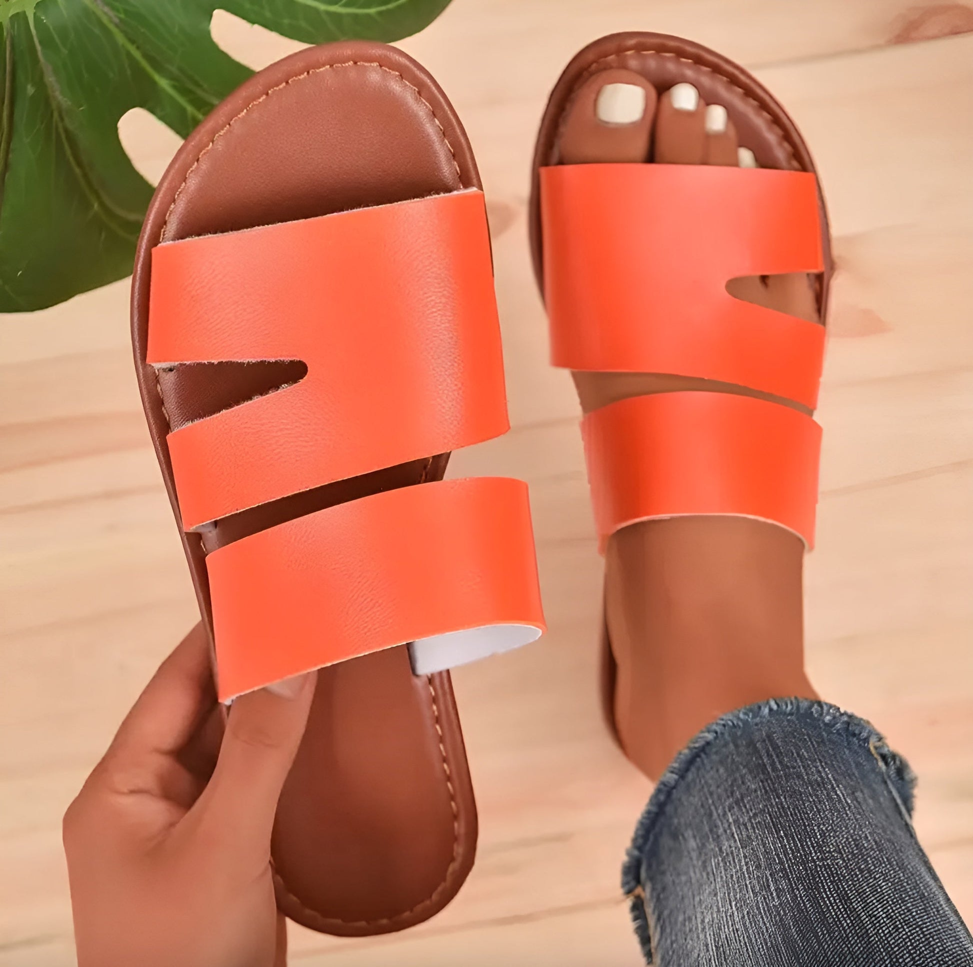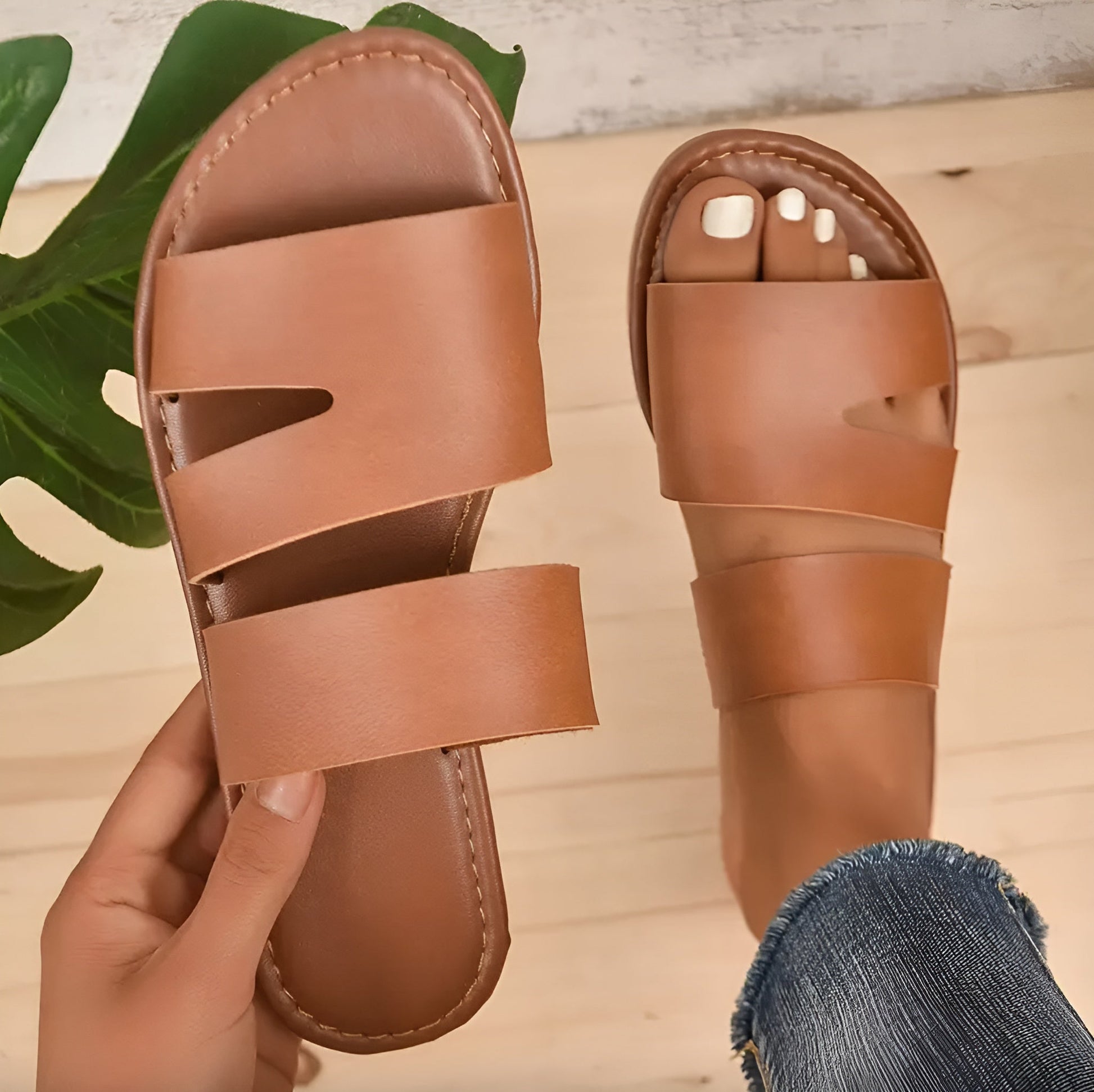 Discover these slip-on flat sandals, perfect for completing your summer wardrobe. With their sleek and trendy design, they are ideal for everyday use. The double strap ensures optimal support, while the soft sole guarantees comfort throughout the day. Lightweight and easy to wear, these sandals are perfect for casual outings, vacations, or relaxing in style.