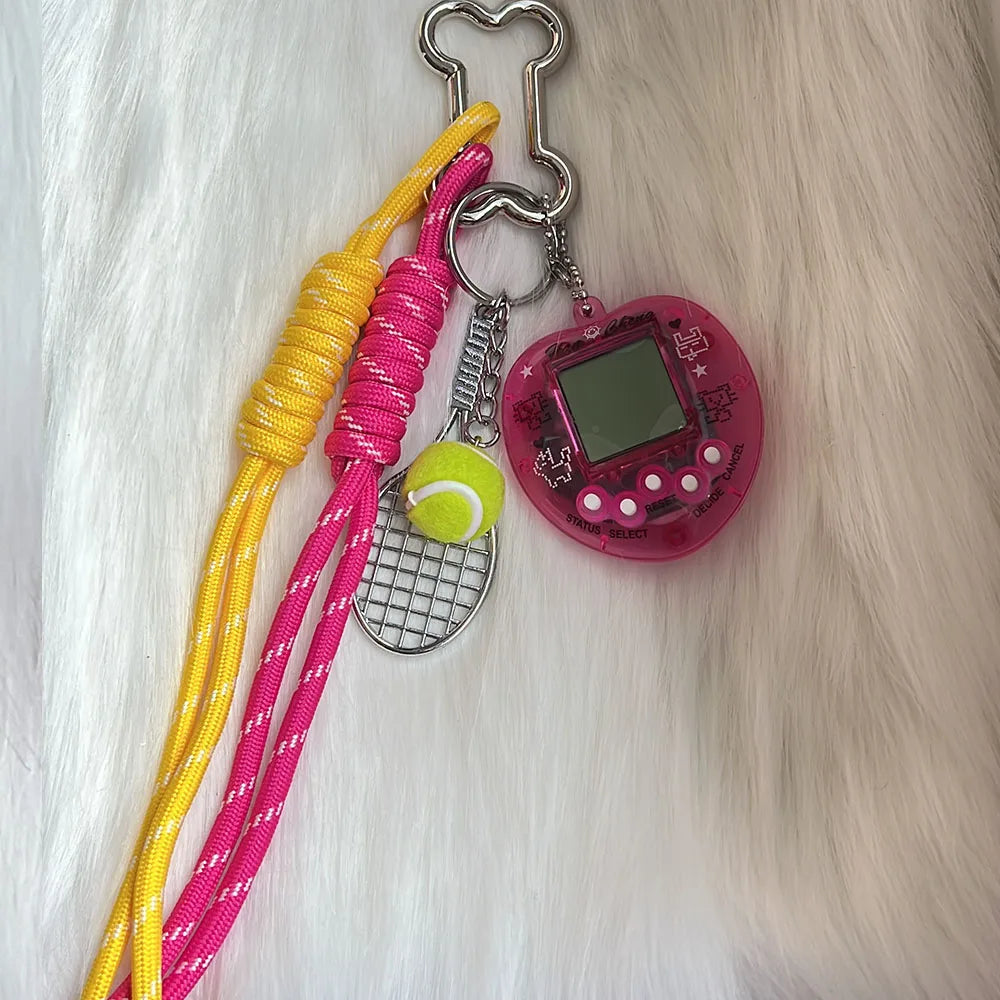 Add a playful touch to your daily life with this rainbow game console keychain. Made of zinc alloy, this Harajuku charm combines a retro design with cute elements for an accessory that is both practical and trendy.