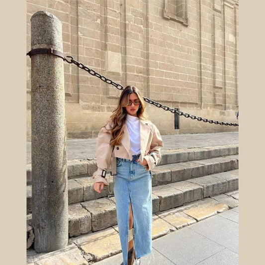 Elegant Women's Suit Set with Long Sleeve Crop Top and High Waist Skirt – Chic and Comfortable