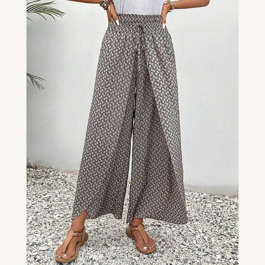 Sophisticated Geometric Print Women's Fluid Pants – High Waist and Wide Legs in Soft Cotton