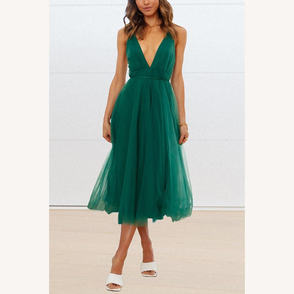 Embrace elegance with the V-neck midi tulle dress, a stunning piece that captures the essence of romance and sophistication. Perfect for special occasions, this dress is designed to make you feel enchanted and graceful thanks to its delicate tulle and flattering silhouette.