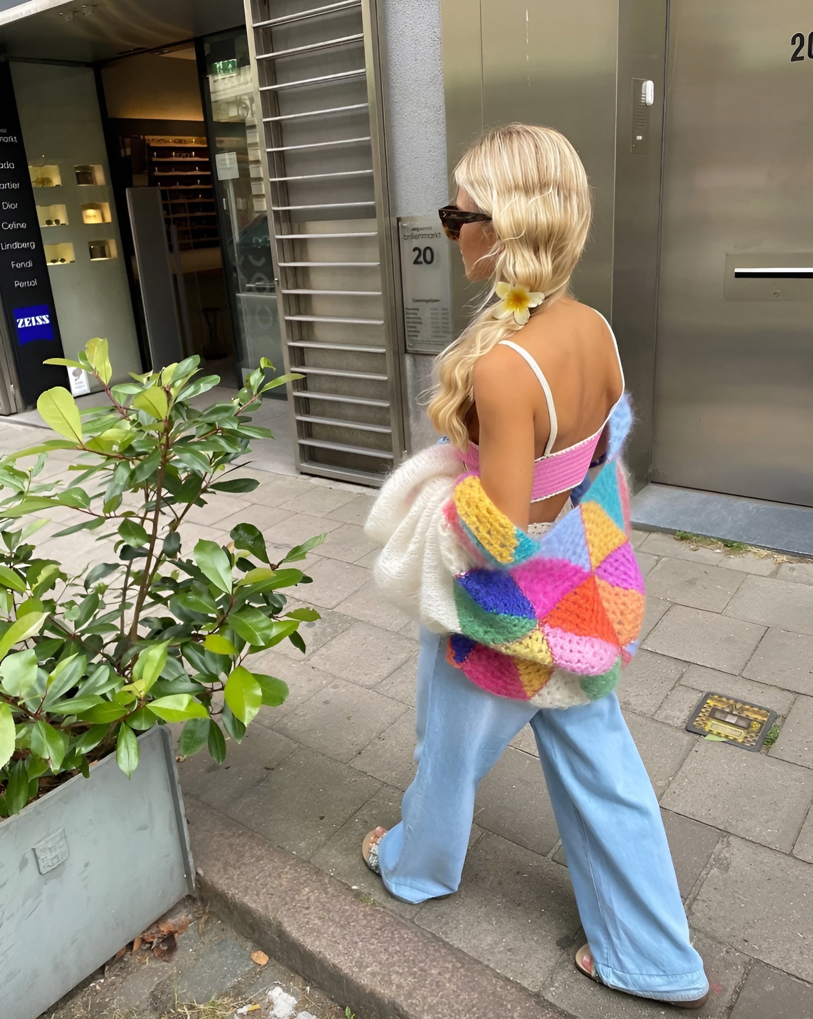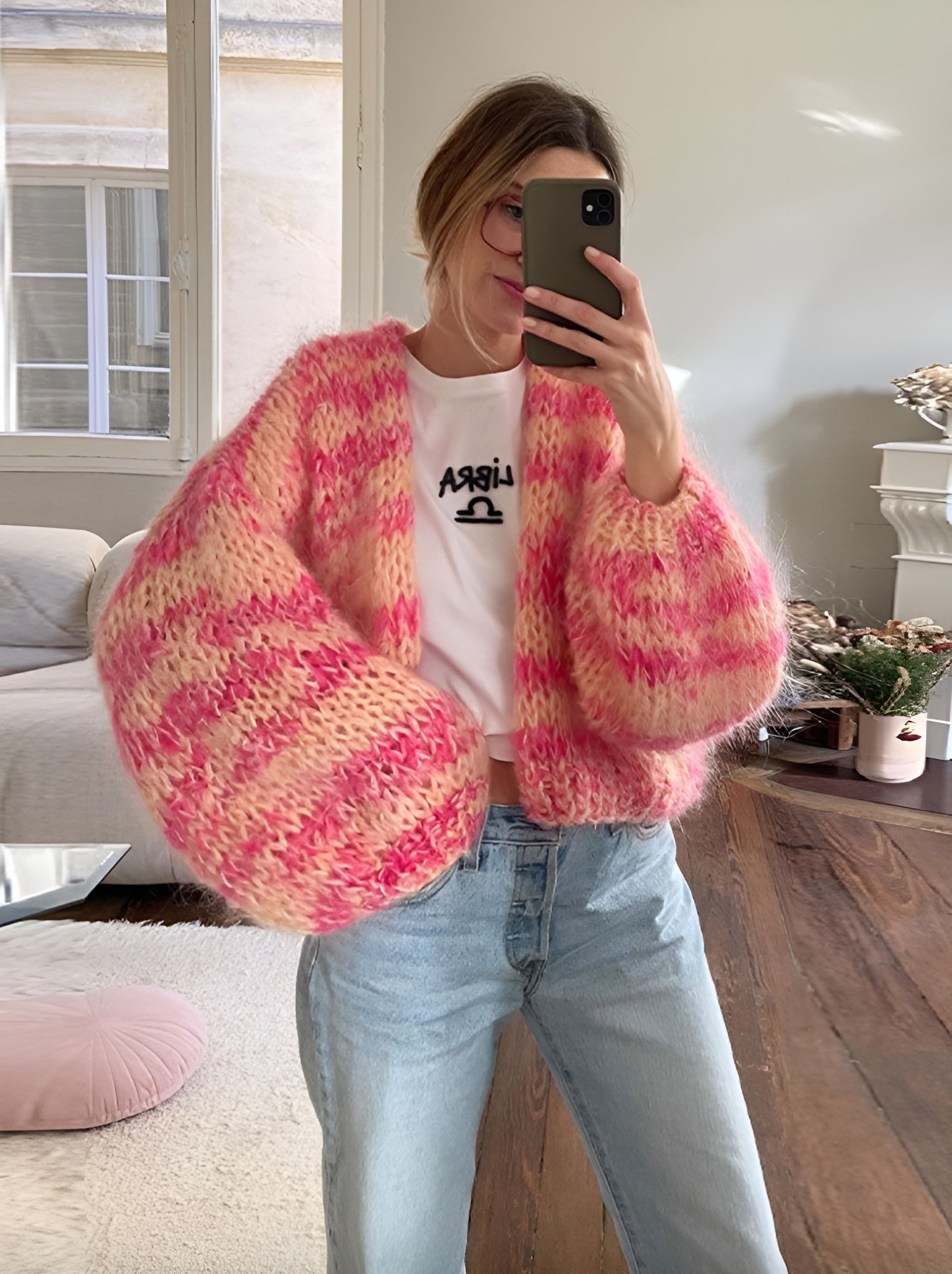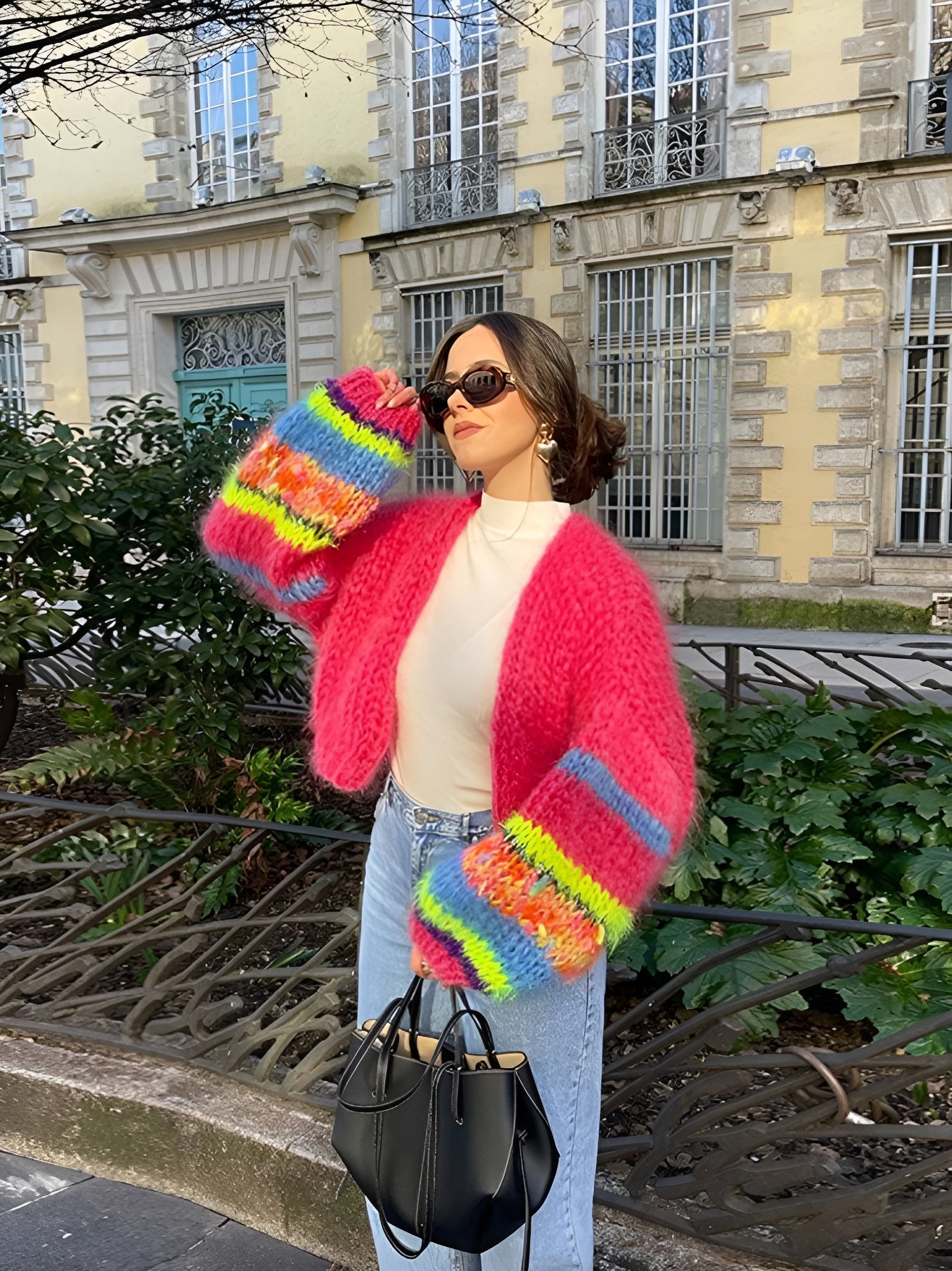 Discover this chunky knit vest, perfect for adding a splash of color to your outfits. With its multicolored stripe design and hand-knitted effect, this vest combines comfort and style, ideal for cool days. Its soft and warm texture makes it a perfect choice for mid-season, whether for a casual outing or a stylish urban look.