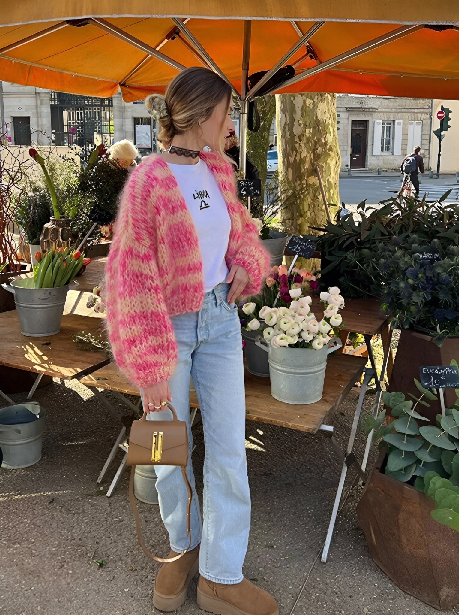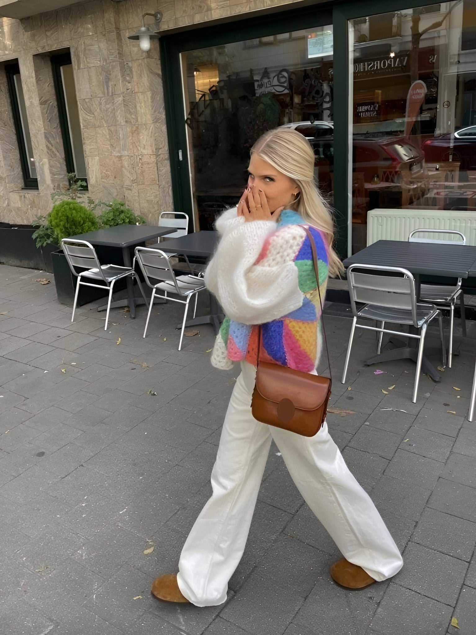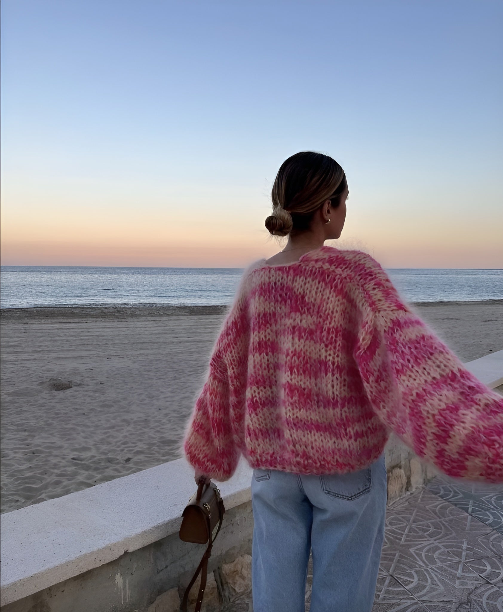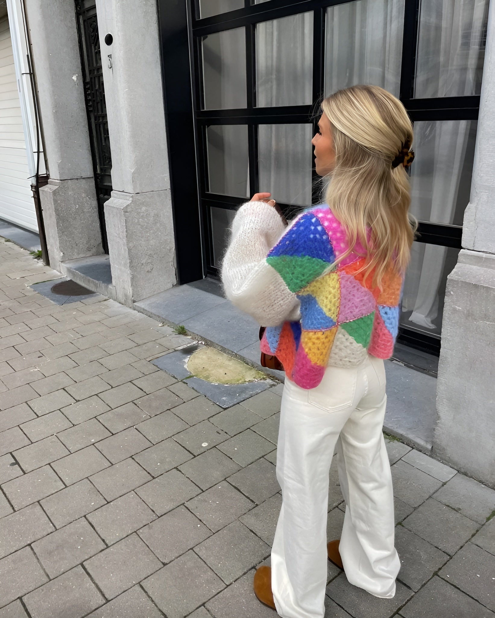 Discover this chunky knit vest, perfect for adding a splash of color to your outfits. With its multicolored stripe design and hand-knitted effect, this vest combines comfort and style, ideal for cool days. Its soft and warm texture makes it a perfect choice for mid-season, whether for a casual outing or a stylish urban look.